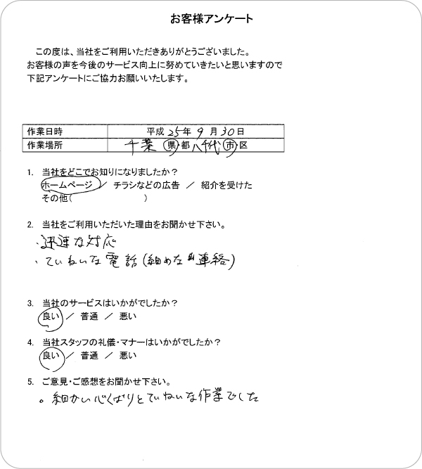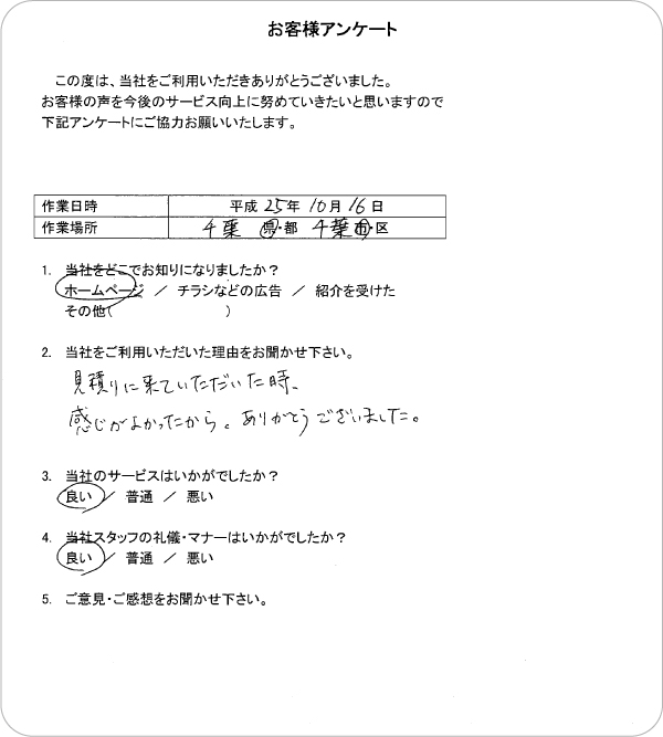 弊社の住宅整理・遺品整理サービスをご利用頂いたお客様のご意見・ご感想を掲載しています。